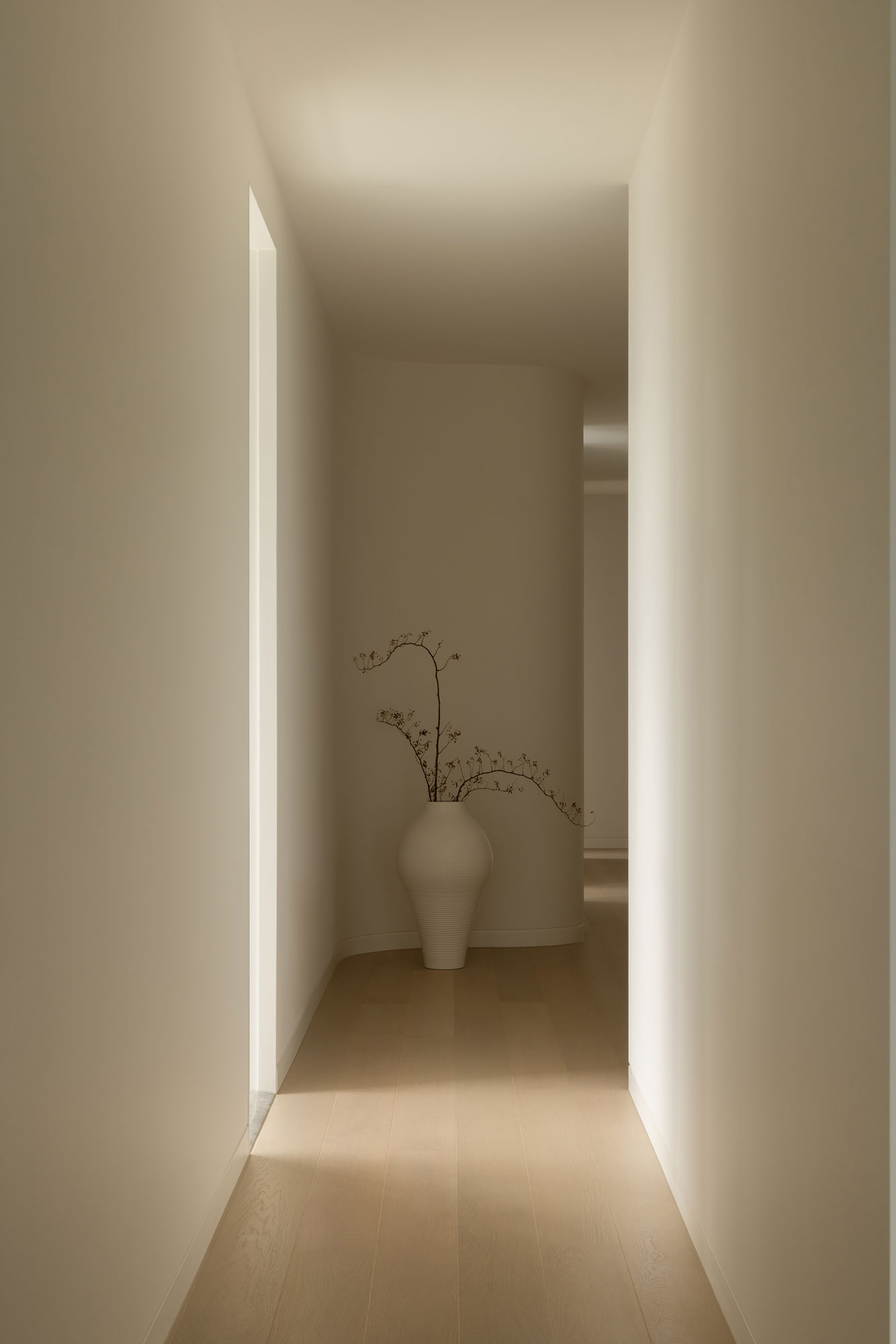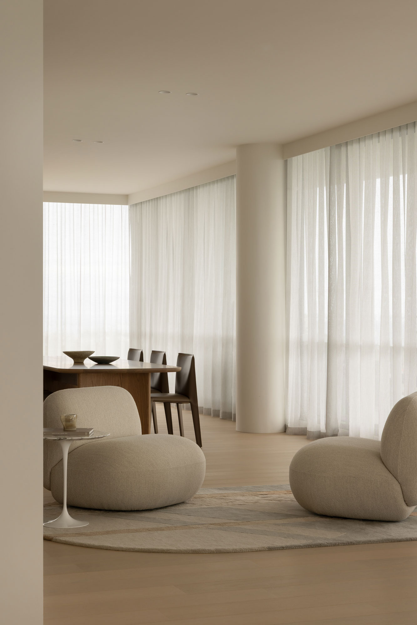 The tower is articulated vertically by a seam that splits up the primary street frontages, conveying a sense of fluidity while making the volume appear taller and thinner than it is.
