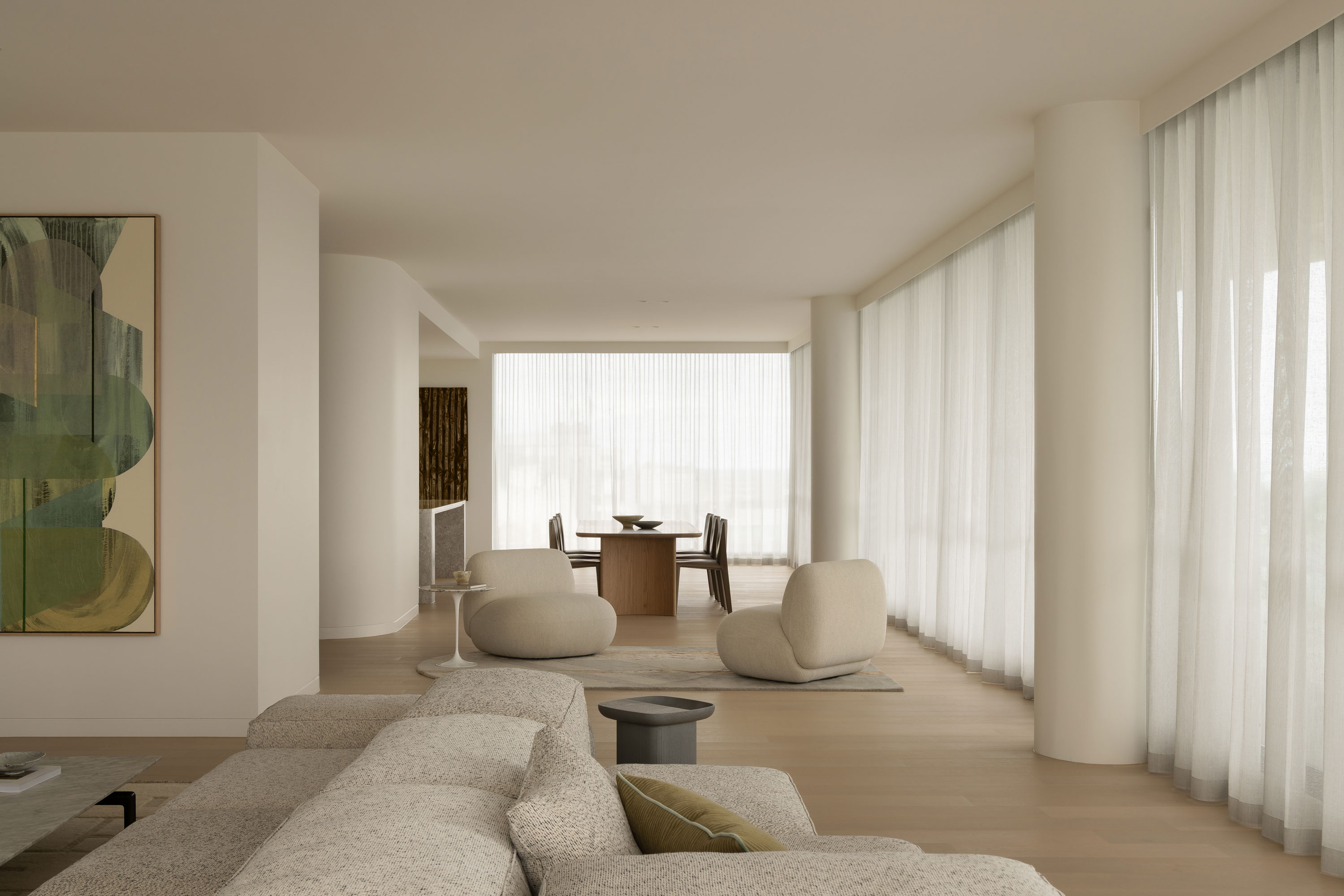 View lines have been maximised where possible, and the upper floor residences boast breath-taking vistas of Albert Park, Port Phillip Bay, and the Melbourne city skyline, while thoughtful integration of greenery ensures the outcome connects the building with nature.